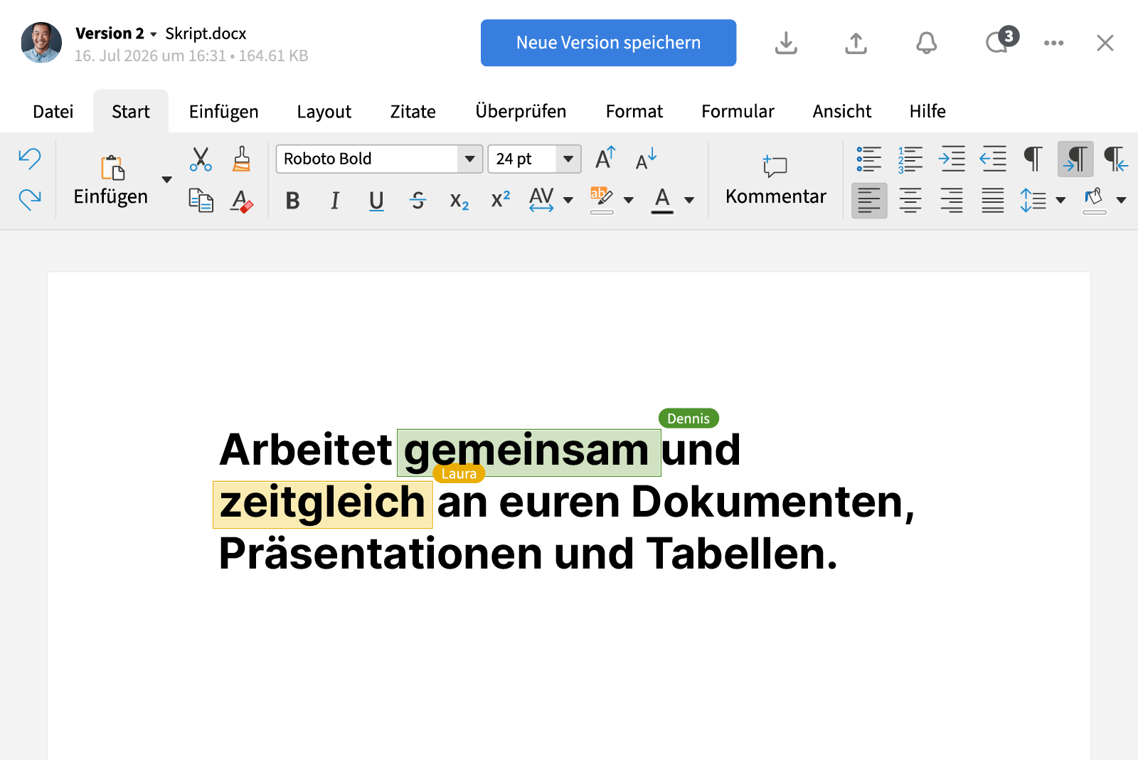 Arbeite zusammen mit Deinen Kollegen an gemeinsamen Dokumenten und Diagrammen. Durch die integrierte Versionierung werden Informationen nie überschrieben.