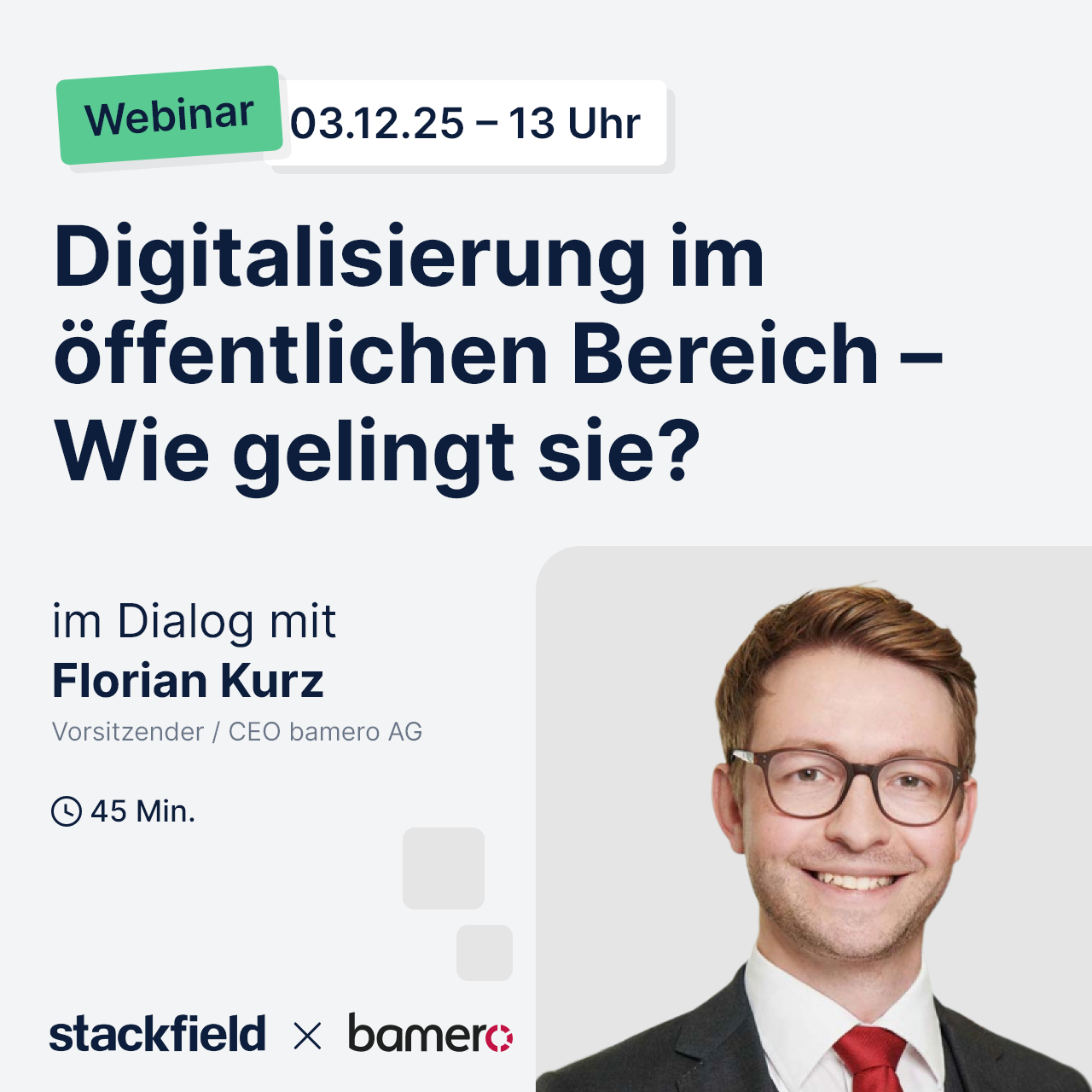 In unserem Webinar sprechen wir mit bamero-CEO Florian Kurz darüber, was dabei zu beachten ist und wie sein Beratungsunternehmen Verwaltungen ganz praktisch unter die Arme greift.