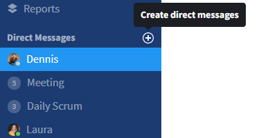 - Click the "plus" icon to the right of "Direct Messages" in the sidebar.