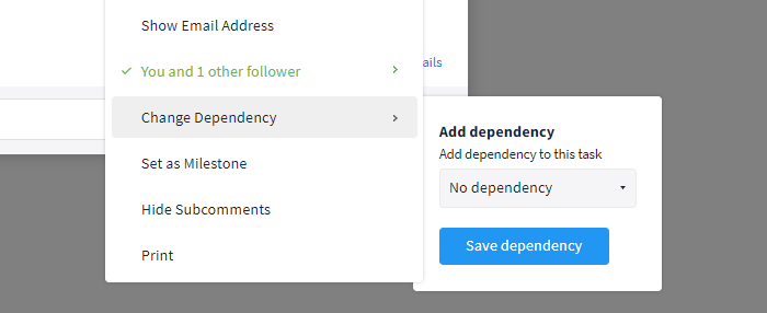 As an alternative to this dependency, subtasks can be used for sub-steps. These must also be completed before the main task can be fully completed.